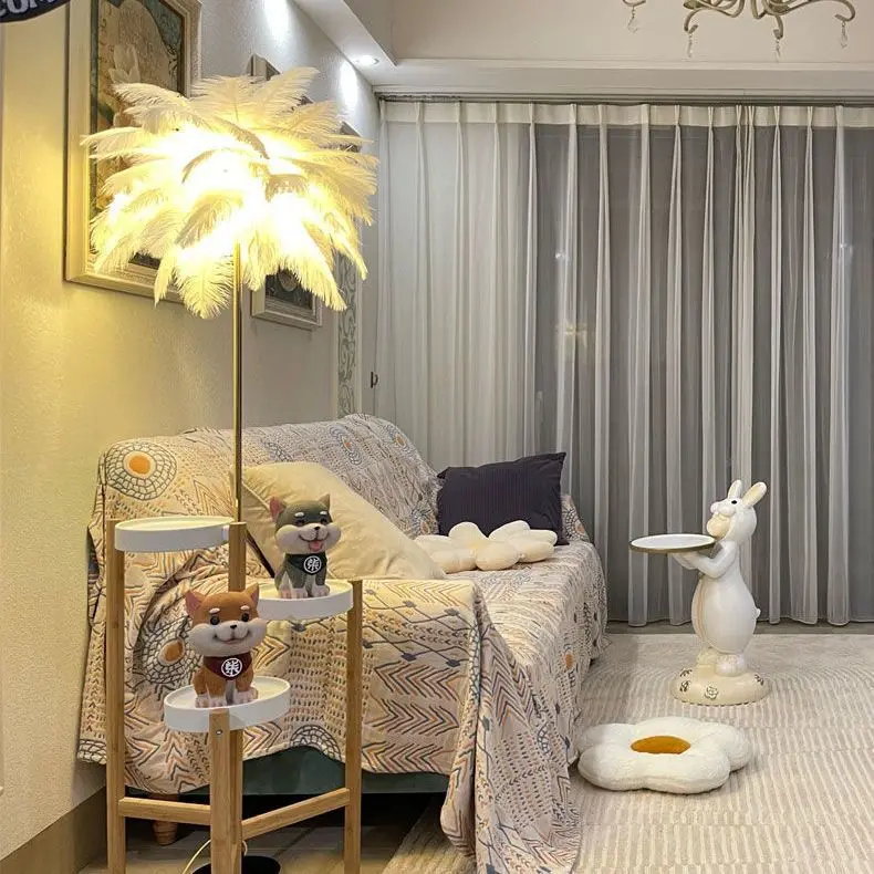 JACKSUN Romantic Decoration Desk Night Lamp Living Room Bedroom Bedside Led Metal Contemporary Ostrich Feather Table Lamp